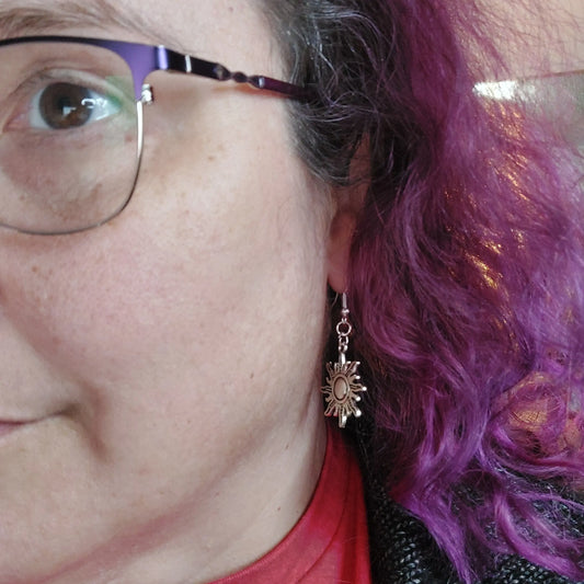Dark Silver and Black Double Moon Quija Planchette Earrings