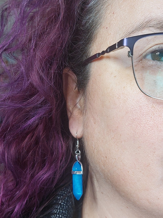 Blue Apatite Gemstone Crystal Bullet Silver Earrings