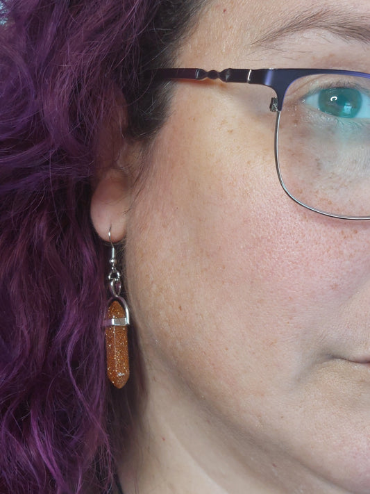 Golden Sandstone Gemstone Crystal Bullet Silver Earrings